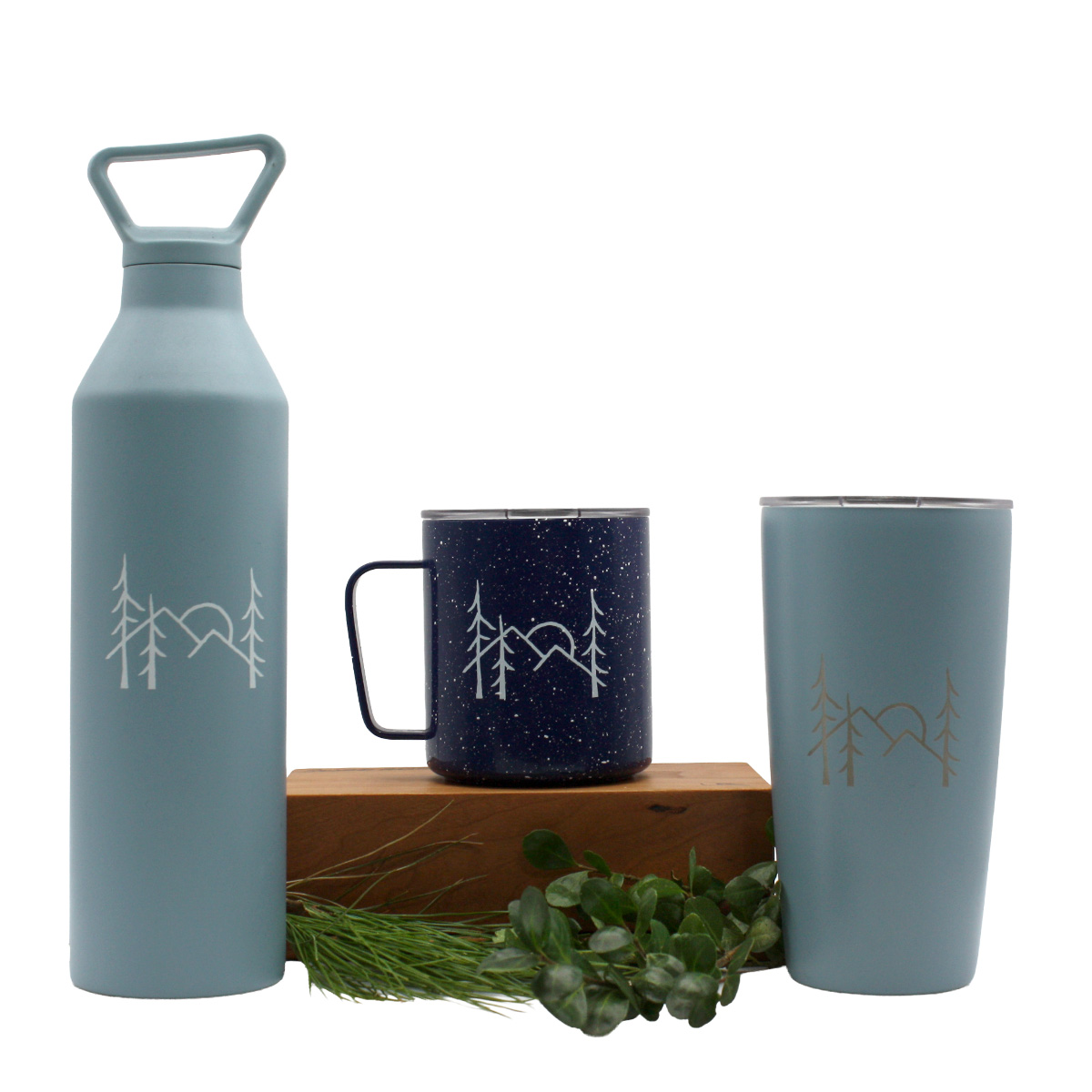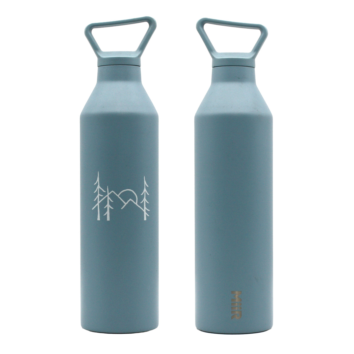 Our MiiR 23oz Narrow Mouth stainless steel water bottle is designed to keep your drink at the perfect temperature for hours. With double wall vacuum insulation, this reusable water bottle ensures your beverage stays just right while the convenient twist, eye ring handle makes it easy to carry and perfect for those on the go.