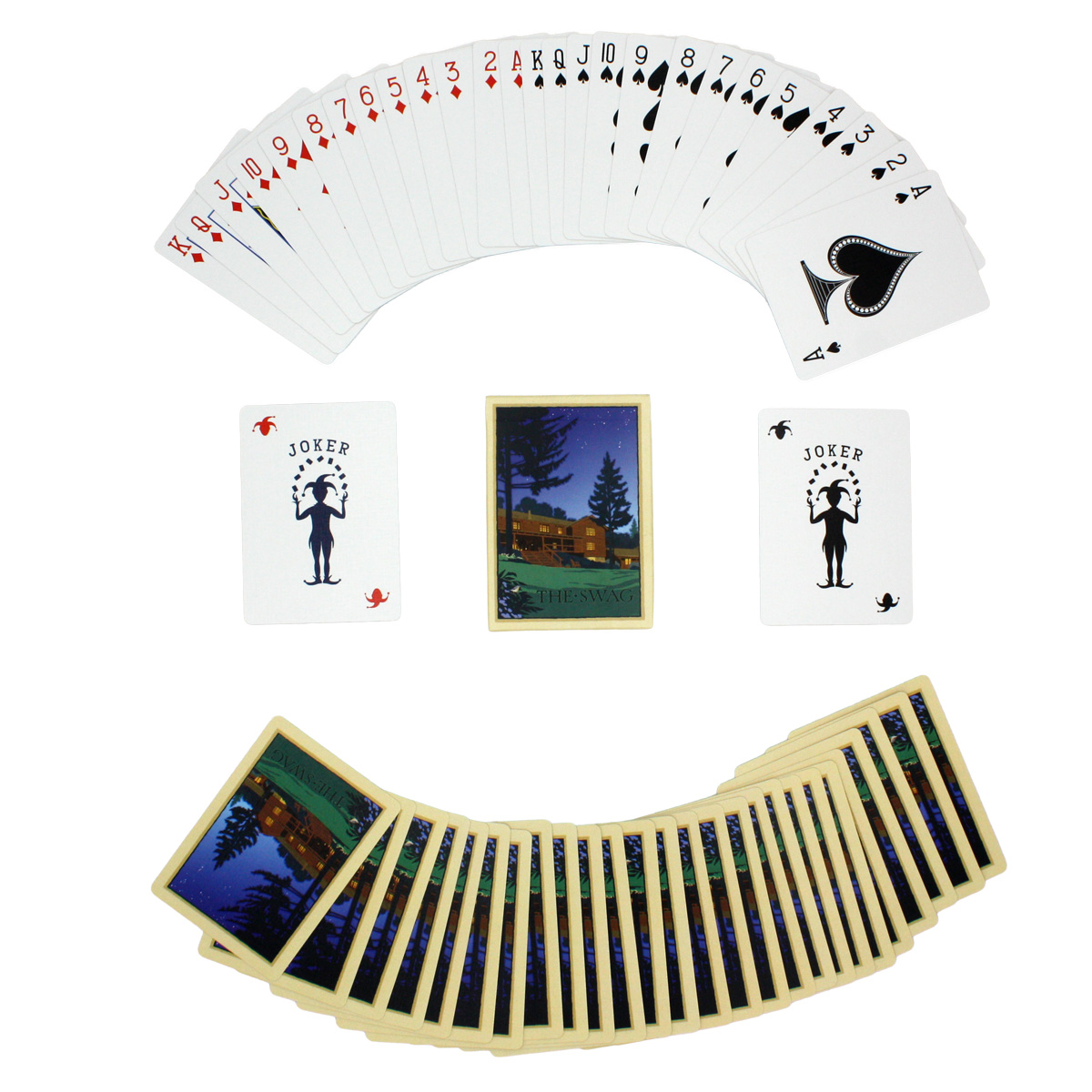 Featuring original artwork, each card reflects the character, history, and mountain elegance of The Swag. Thoughtfully designed and crafted for both play and display, this deck elevates a timeless pastime.